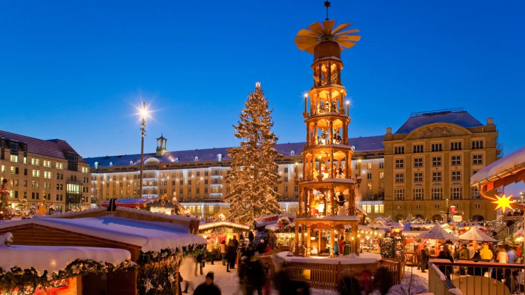 El Dresdner Striezelmarkt es uno de los mercados navideños más antiguos del mundo y su origen se remonta a 1434. Abre del 26 de noviembre al 24 de diciembre de 2025 en el Altmarkt, justo frente al hotel NH Collection Dresden Altmarkt.