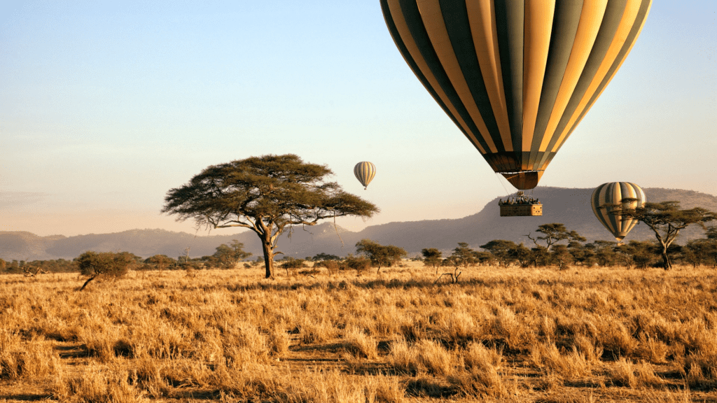 • 🎈 Safari en globo aerostático: una experiencia mágica para contemplar la sabana desde el aire al amanecer.
